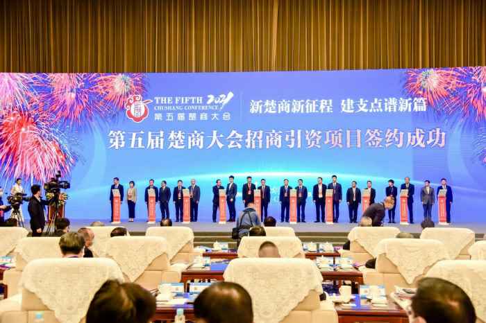10月22日上午,第五届楚商大会在武汉开幕,隆重表彰湖北省优秀中国特色社会主义事业建设者、宣传推介100名杰出楚商。